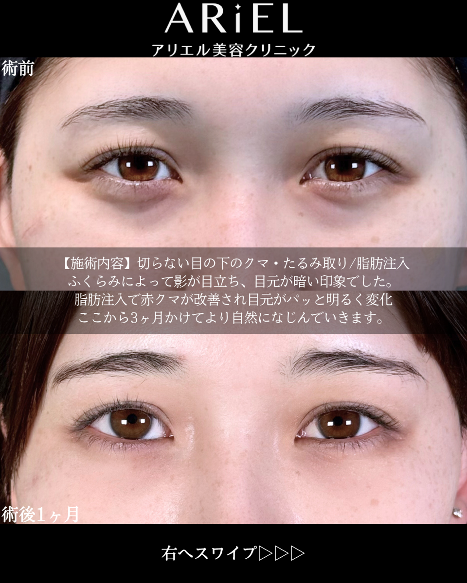 施術リスク | 【目の下の脂肪注入の施術リスク】腫れ・内出血・吸引部の皮膚が硬くなる、凹凸になる・施術箇所の知覚の麻痺・鈍さ、しびれ・色素沈着などを生じることがあります。 |